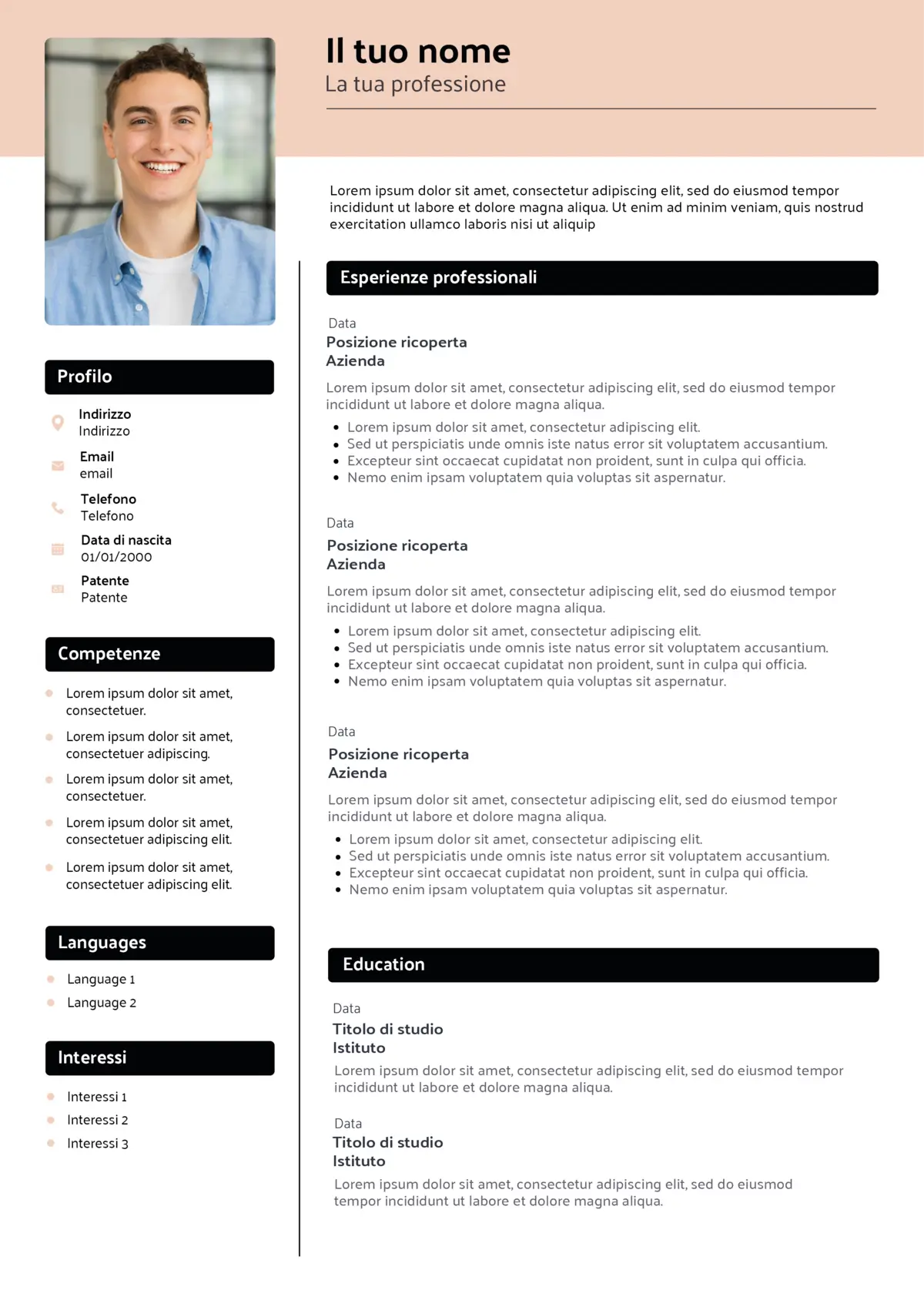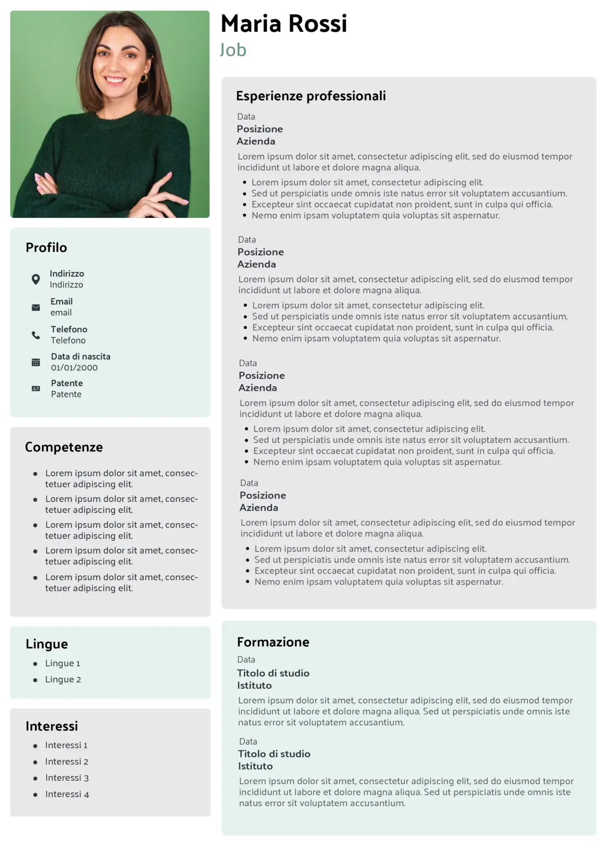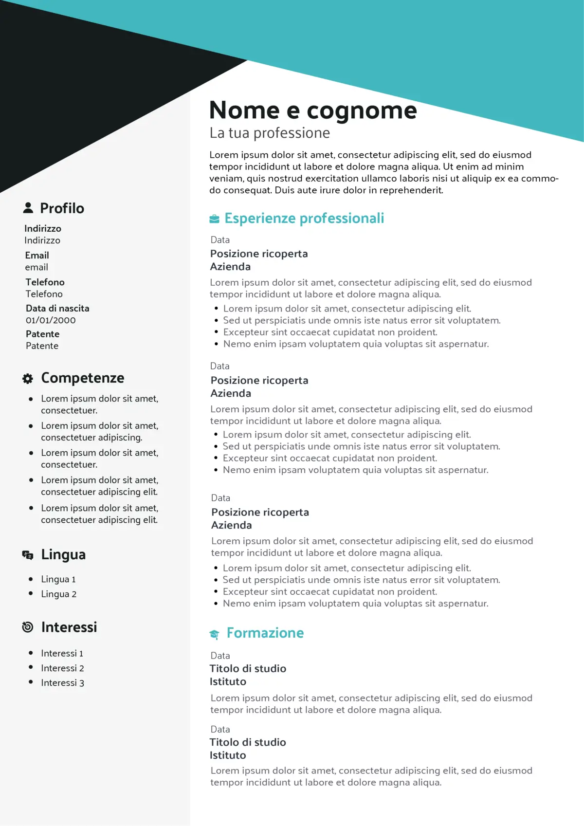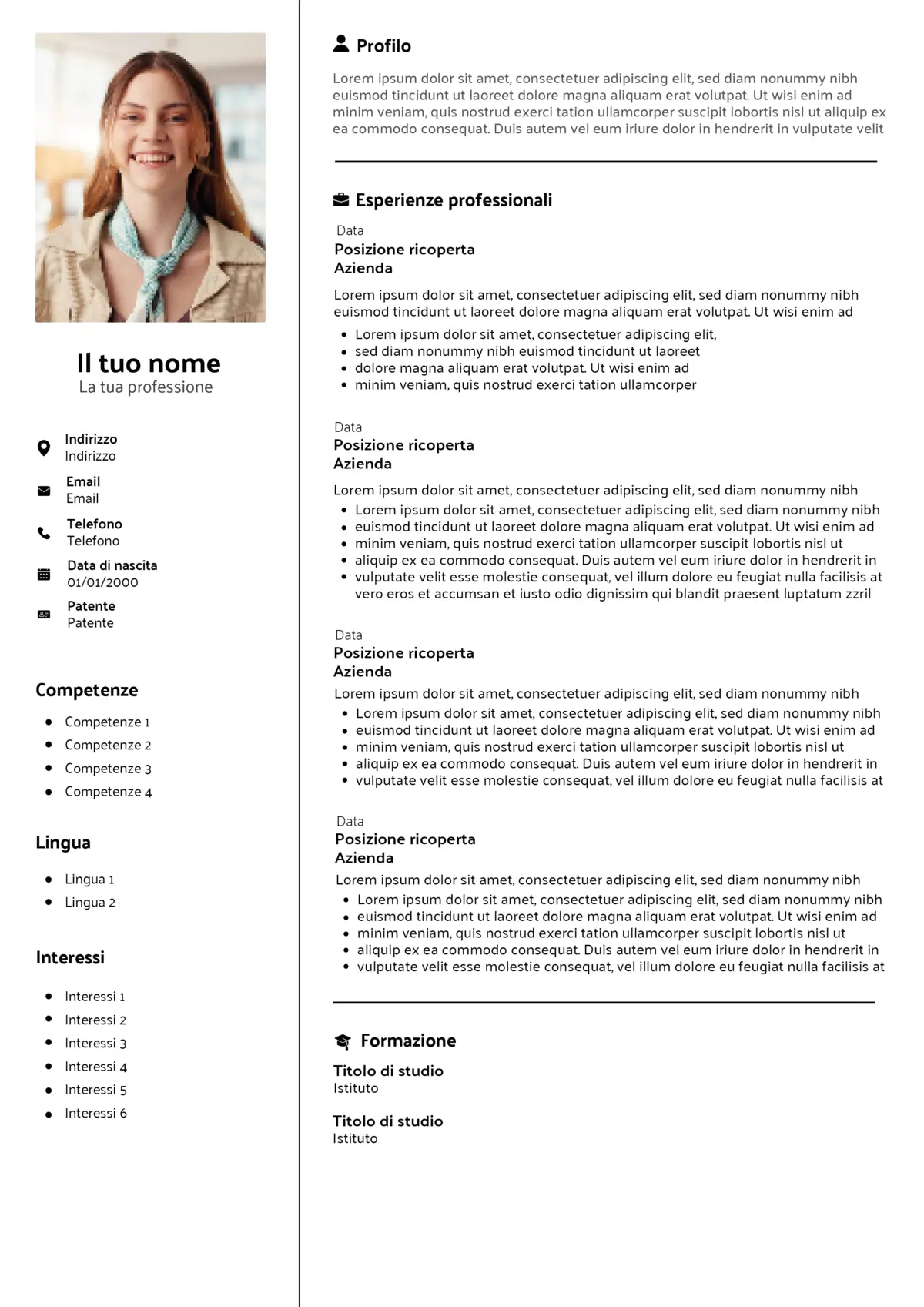 - Pour une candidature dans un secteur formel ou pour une première approche du marché italien : privilégiez un modèle de CV simple ou classique.